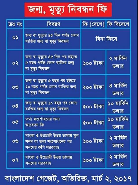 জন্ম ও মৃত্যু নিবন্ধন ফি বৃদ্ধি করা হয়েছে।