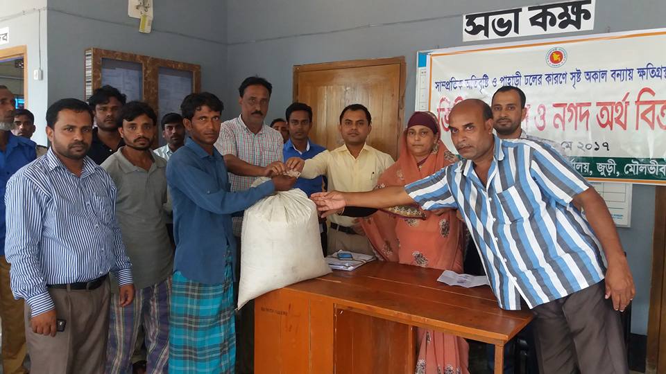 সাম্প্রতিক অতিবৃষ্টি ও পাহাড়ী ঢলে ক্ষতিগ্রস্থ কৃষকদের মধ্যে নগদ অর্থ =৫০০/- টাকা করে বিতরণ। তাং-০৩-০৫-২০১৭